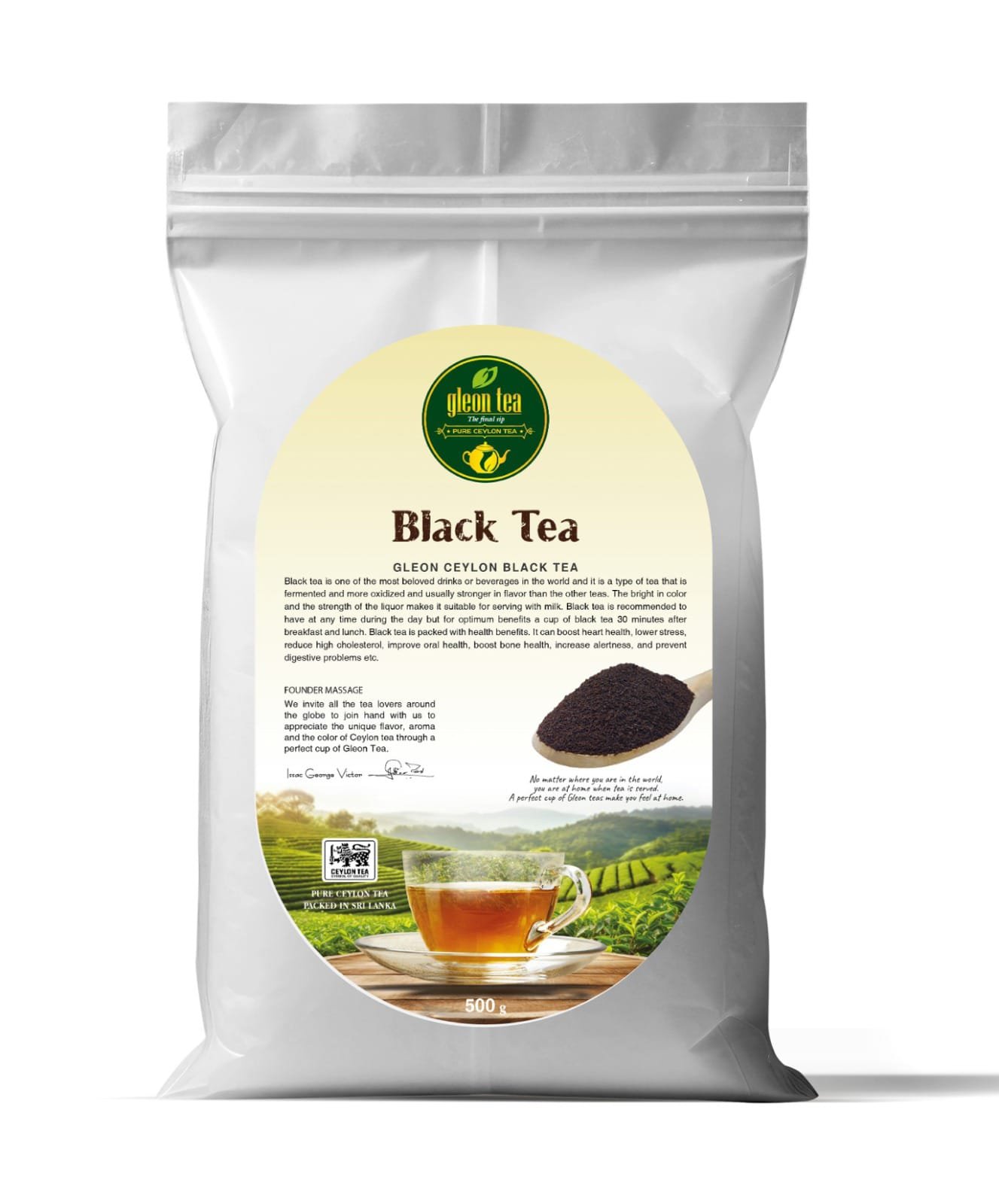 PURE CEYLON TEA – Black Tea is one of the most beloved drinks or beverages in the world and it is a type of tea that is fermented and more oxidized and usually stronger in flavor than the other teas. The bright in color and the strength of the liquor makes it suitable for serving with milk. Black tea is recommended to have at any time during the day but for optimum benefits a cup of black tea 30 minutes after breakfast and lunch. Black tea is packed with health benefits. It can boost heart health, lower stress, reduce high cholesterol, improve oral health, boost bone health, increase alertness, and prevent digestive problems.
